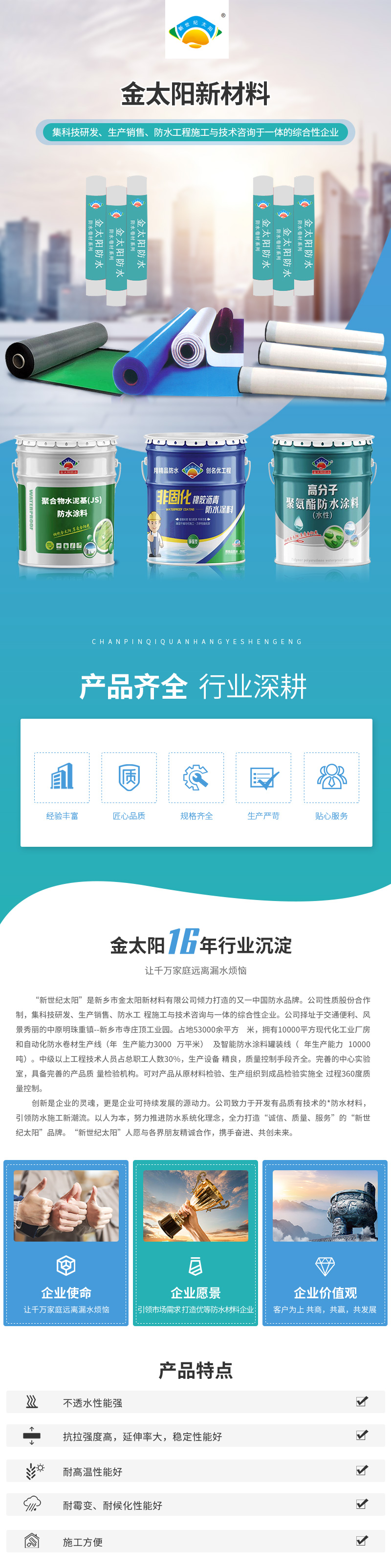 本產(chǎn)品是以水性聚氨酯共聚乳液為基料,通過特定工藝改性配制而成,它既有有機(jī)材料彈性高又有無機(jī)材料耐久性好的特點,及良好的粘結(jié)和不透水性,無溶劑污染,使用方便
